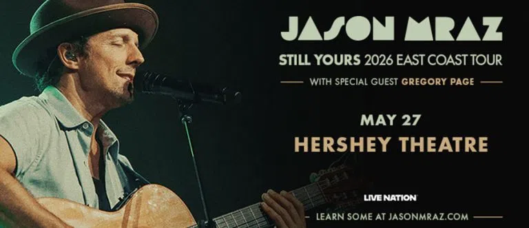 Multi-platinum recording artist Jason Mraz today announced "Still Yours," a 2026 run of tour dates across the East Coast, including a show at Hershey Theatre.